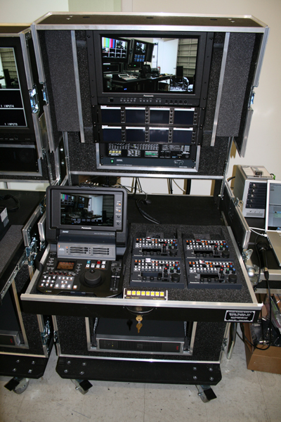 Crew 1 TV is one of New York’s premier independent production companies. As their need for full HD production increased, Crew 1 TV came to Mobile Studios to produce a Fly Pack set for full HD production. Due to the space required for all the components Crew 1 TV needed, two flypacks were used, allowing one for the switcher operator and another for the camera engineer. The extra space in the Engineering Console was filled with Panasonic’s HPM110 P2 Recorder/player. In addition, the Engineering Console features the technology for direct-to-disk recording. Crew 1 TV can take the program output from the switcher and drop it directly into Final Cut Studio’s timeline.