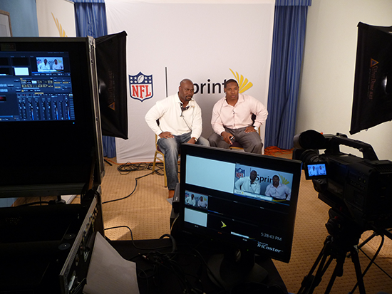 Mobile Studios had the unique opportunity to webcast Sprint’s annual Phone-A-Friend event with NY Jets quarterback Mark Sanchez, Jaguars RB Maurice Jones-Drew and TV commentator / Ex Giants line-backer Michael Strahan. In addition to providing the complete video production equipment, we also unveiled our new IP satellite uplink system installed in “Flypack 1” our Ford Expedition vehicle for the uplinked live stream.